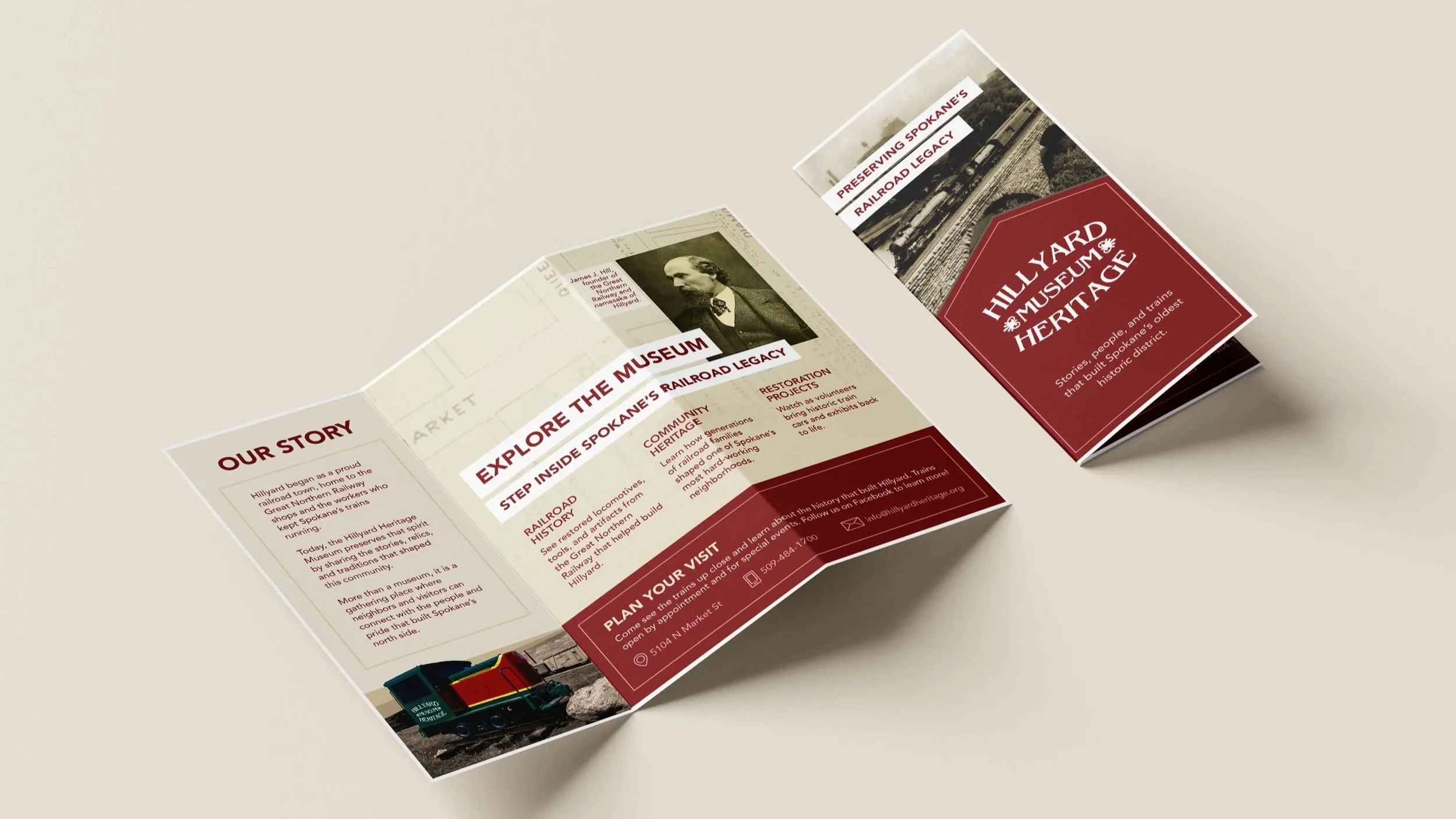 A modern but still heritage-inspired redesign for the Hillyard Heritage Museum. The goal was to capture the community’s railroad legacy while creating a clear, visitor-friendly piece that inspires connection and support.